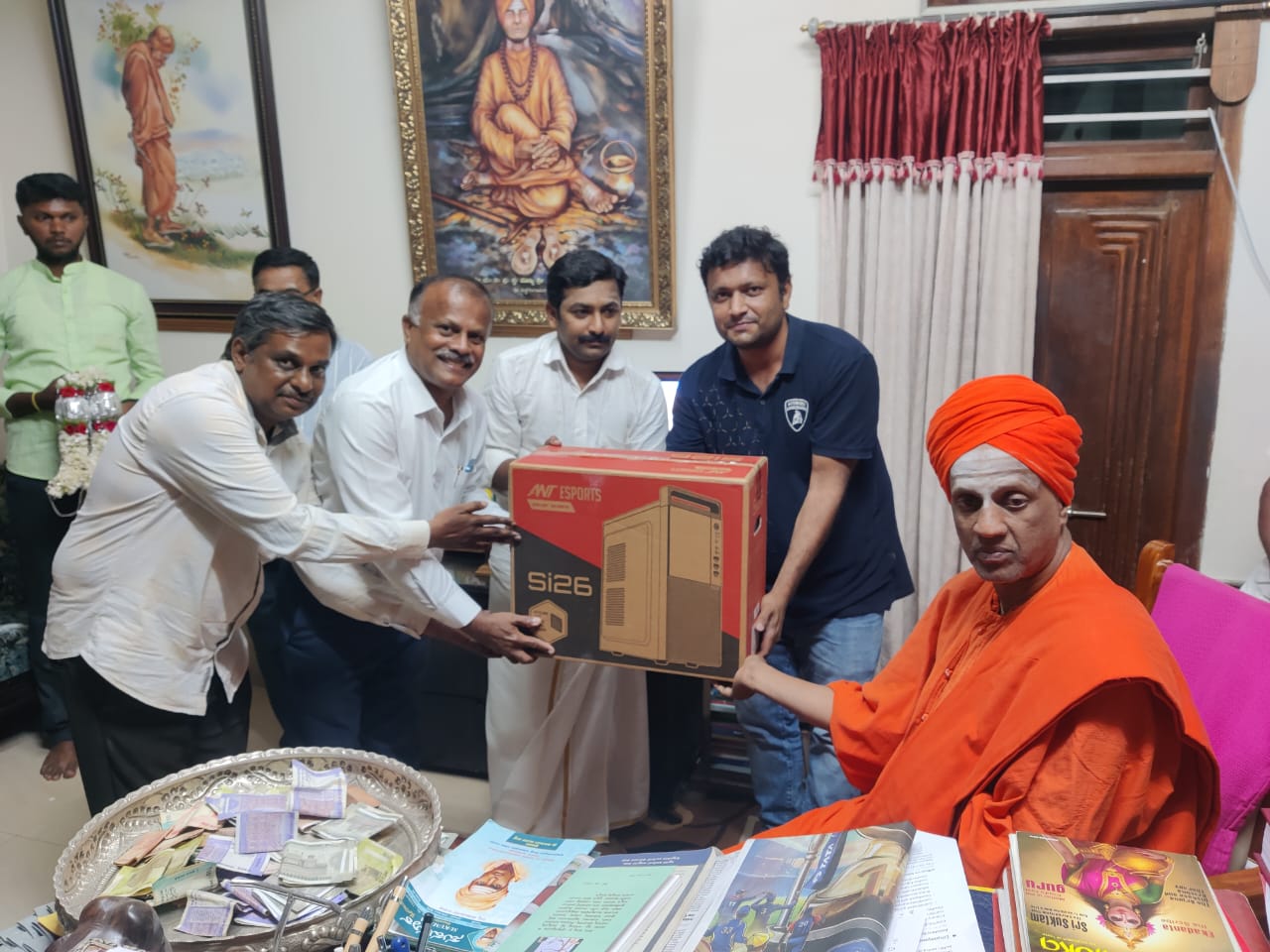 • DR Naganna sir being felicitated by Swamiji in evening prayer